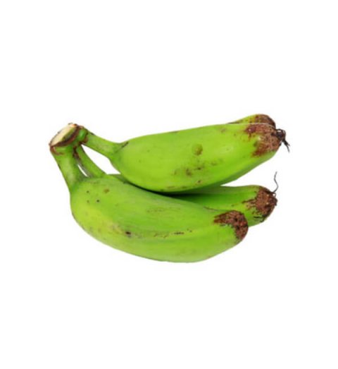 Raw bananas are small to medium in size and are elongated, cylindrical, and slightly curved in shape. The peels are thick, smooth, and green with a fibrous texture and semi-bitter flavor, and the surface can easily be scratched and marked. The white to cream-colored flesh is dense, firm, and creamy with central tiny, infertile seeds or is seedless, and the flesh runs the entire length of the peel. Raw bananas are available year-round.